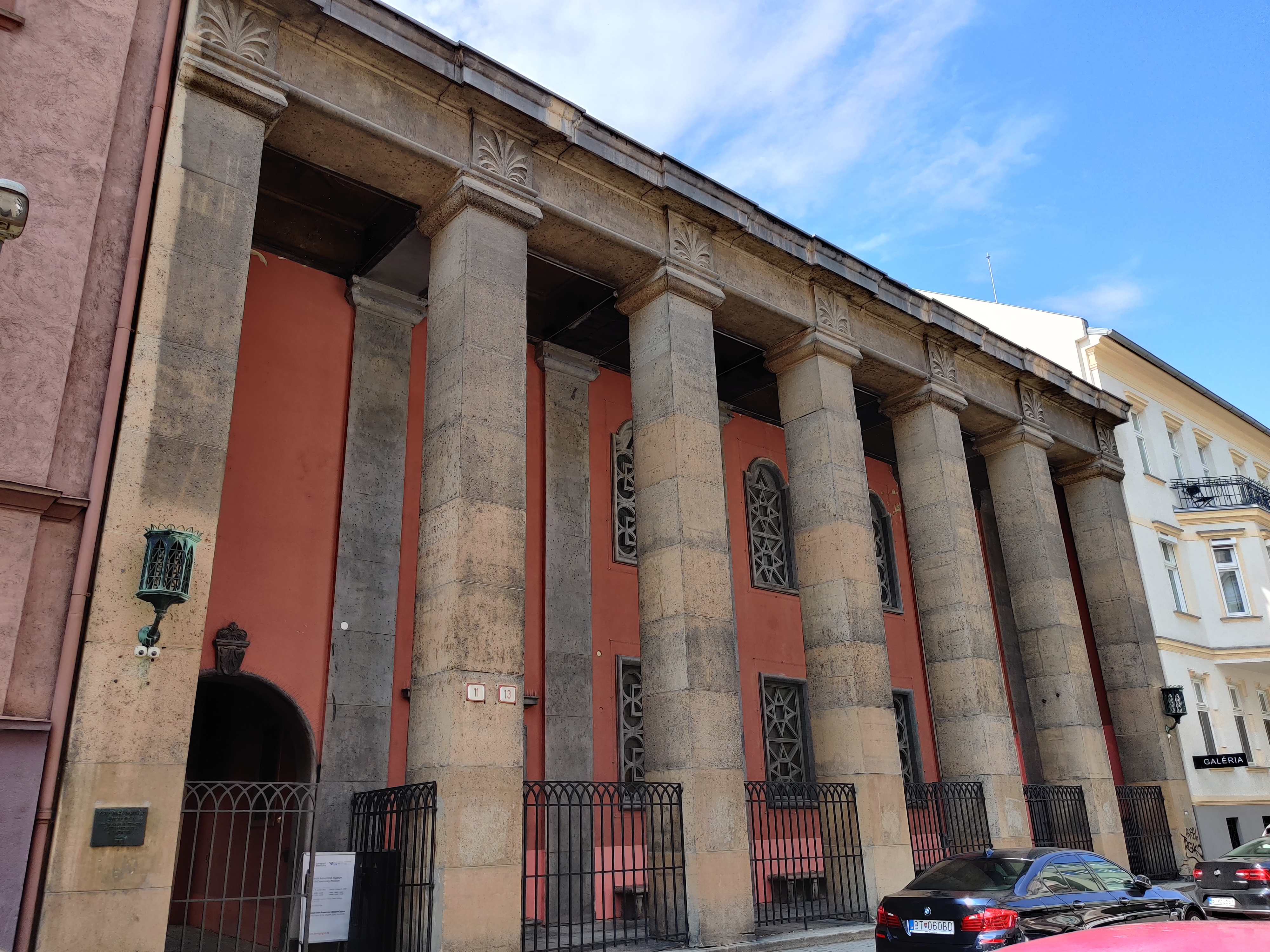 Die Ausstellung des Jüdischen Gemeindemuseums ist im Obergeschoβ der Synagoge installiert. Die Synagoge wurde im kubistischen Stil nach den Plänen vom Architekten Artur Szalatnai-Slatinský in den Jahren 1923 – 1924 gebaut. Die Synagoge wird auch heute als jüdisches Gebetshaus benutzt.